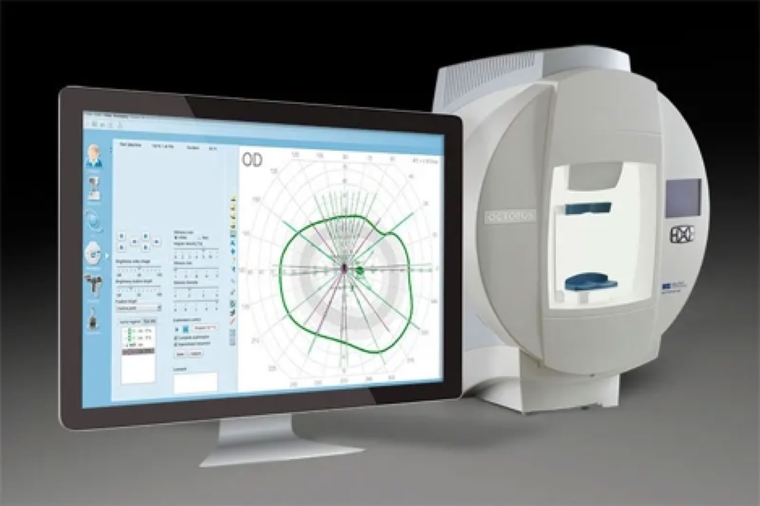 Bei der modernen Gesichtsfeld- Untersuchung mit dem neuen Octopus 900 aus der Schweiz werden in nur 3 Minuten mit hoher Präzision auch geringste Defekte entdeckt. Auch ältere Patienten können so schonend untersucht werden.